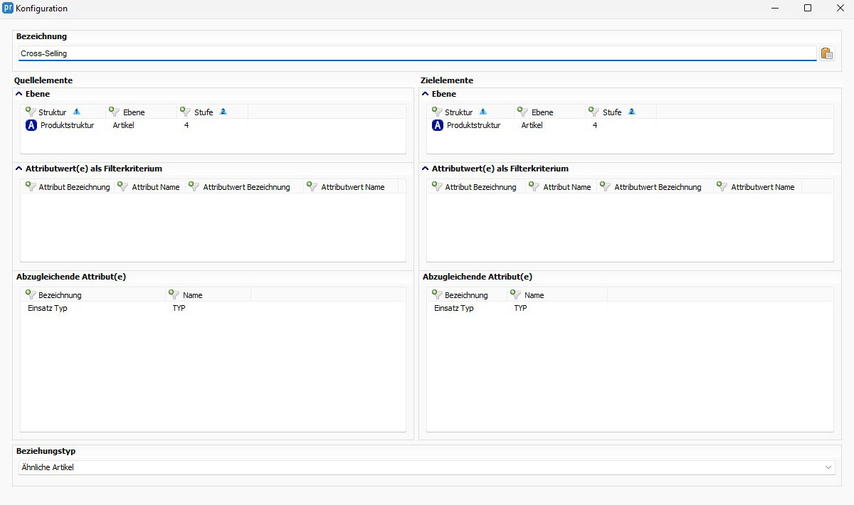 Beispiel 1 „Cross Selling“: An Quell- und Zielelement wird nach einem identischen Attribut gesucht.